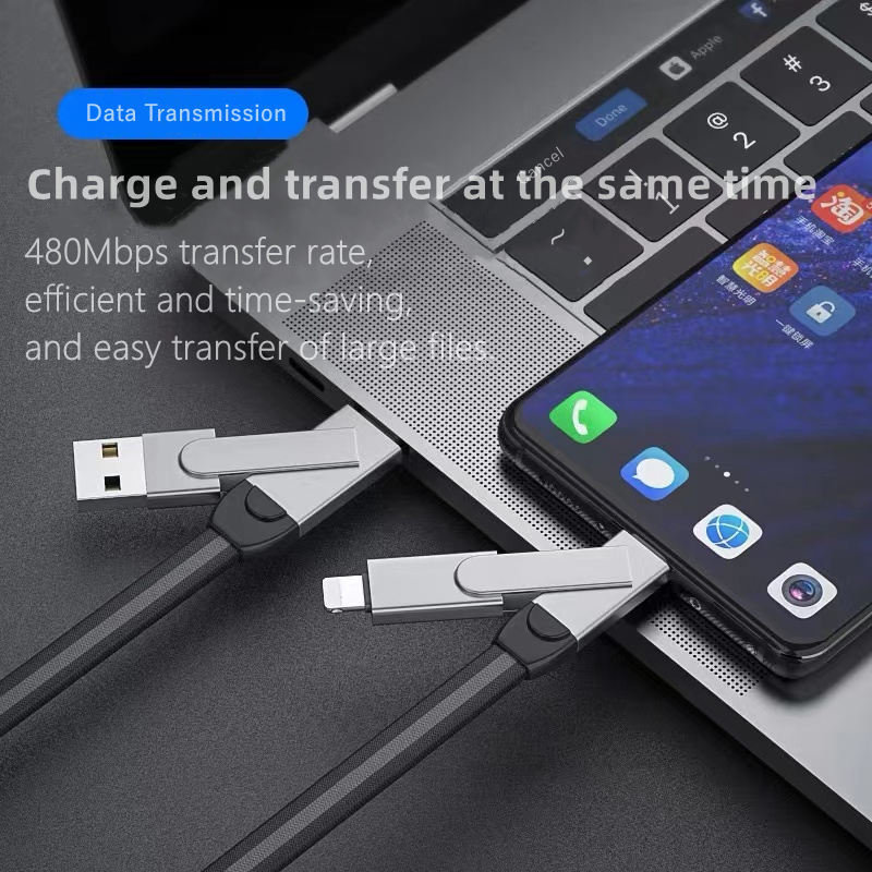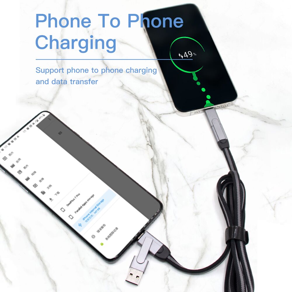 The 6-in-1 design includes four connectors and six charging styles, including support for phone-to-phone charging and data transfer. The PD charging cable also supports fast charging, fully charging your device in just 50 minutes.