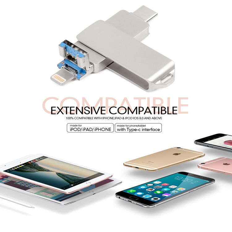 The OTG Type-C to Lightning USB Flash Drive is a high-quality storage device that offers versatile connectivity and reliable performance. With its USB 3.0, micro USB, and Type-C interfaces, it provides seamless compatibility with various devices. The flash drive comes in capacities ranging from 8GB to 256GB, allowing ample storage space for your files.