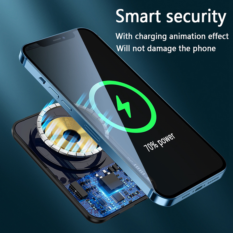 In summary, the Wireless Magnetic Power Bank combines the convenience of wireless charging with a magnetic design and versatile charging options. It is a reliable, portable, and efficient solution for keeping your devices powered up on the go.