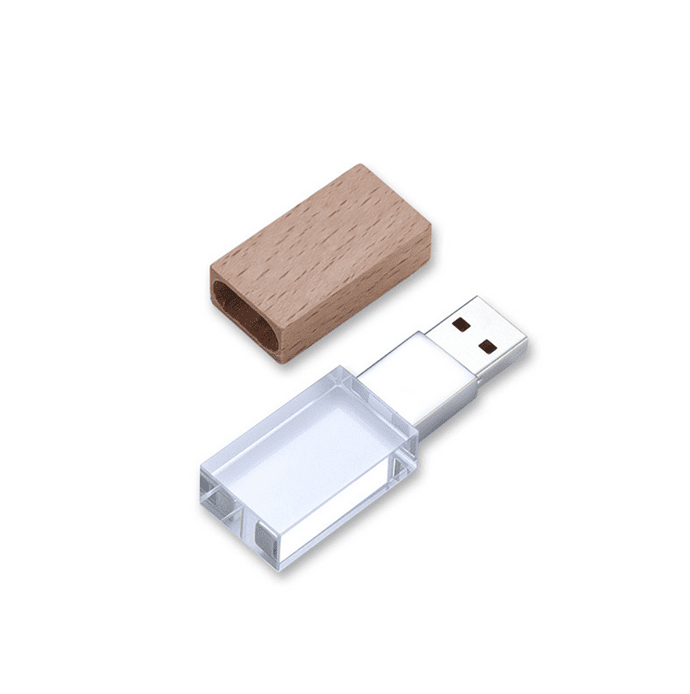 The wooden crystal USB flash drive is a stylish and unique storage device that features a crystal base and a wooden cap. The crystal base adds a touch of elegance and sophistication to the design, while the wooden cap provides a warm and natural element. The wooden cap can be customized with a logo or design of your choice, making it a great option for businesses, organizations, or individuals looking to promote their brand or add a personal touch.